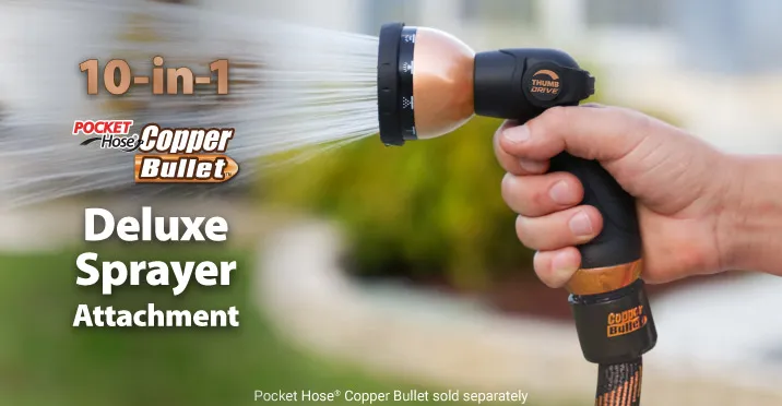 Pocket Hose® Copper Bullet Deluxe 10-in-1 Sprayer Thumb Control Hose Spray Attachment