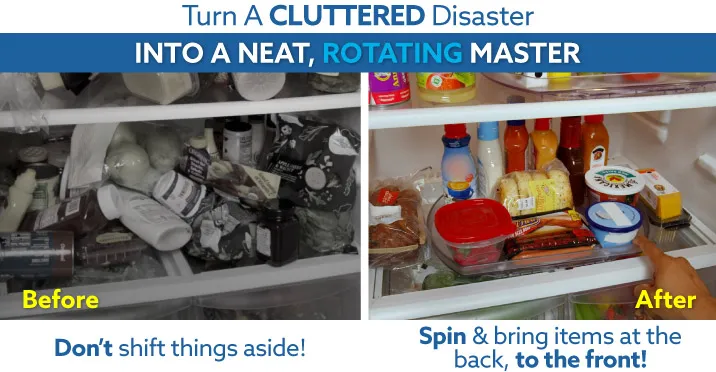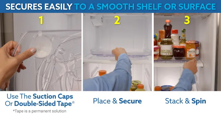 Smart Spin is the rotating refrigerator organiser, that makes it fast & easy to see, find, and select exactly what you’re looking for, with just a spin! Smart Spin's air glide design lets the tray slide and spin a full 360° to bring all the food that is lost in the back, right to the front. Plus, it's sturdy enough to hold up to 7.7kgs and still spin with ease. Smart Spin is a space saver and fits on most shelves, so it’s perfect for the pantry, bathroom cabinets and under the sink too – no assembly required. Why shift things aside, when you can find them with ease, with Smart Spin.